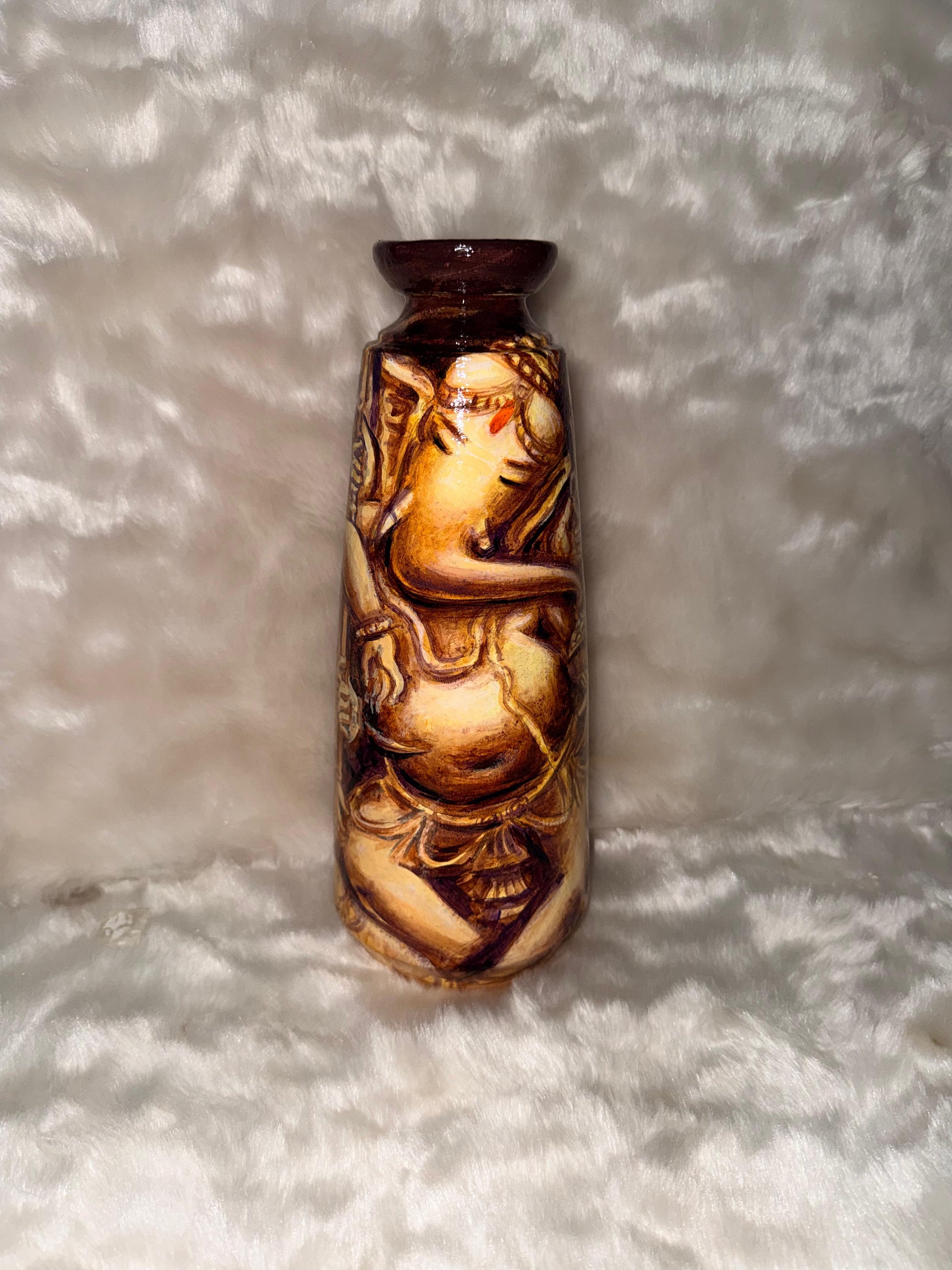 - Hand-Painted Art: This terracotta pot features a unique, hand-painted depiction of Lord Ganesha, making it a sacred and artistic decorative piece.